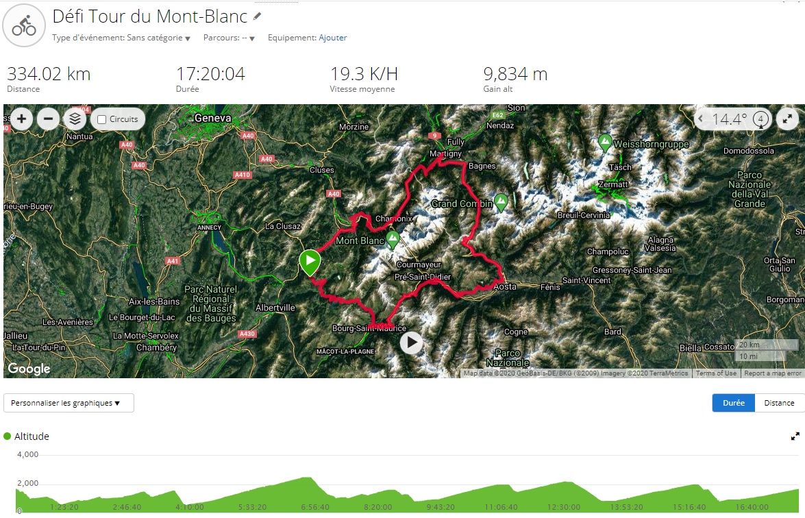 31/07/2020 [Cyclisme] Tour du Mont-Blanc revisité. (334km, 10 000 D+) en 17h20